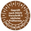 Prüfplakette "Geprüft nach DGUV Vorschrift 3 nächster Prüftermin" auf Bogen