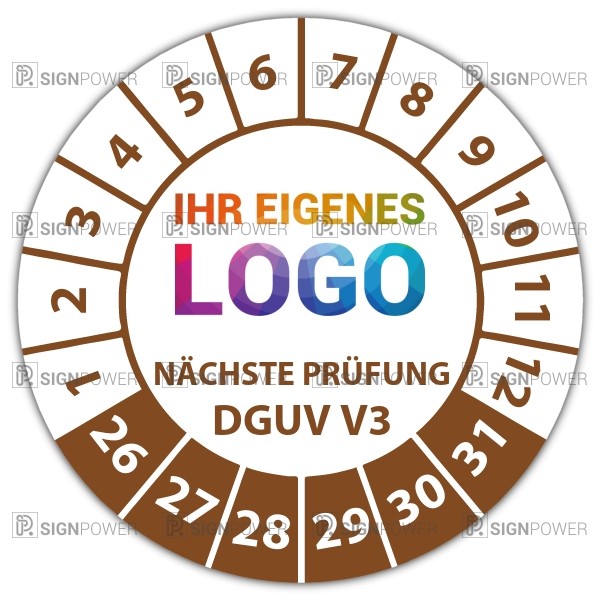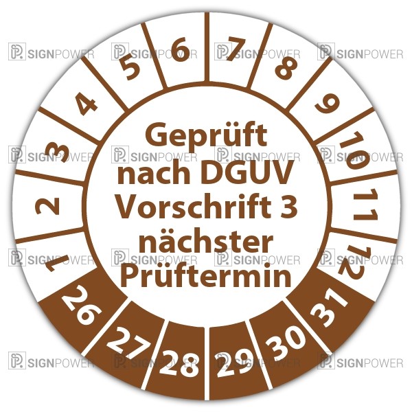 • Prüfplakette "Geprüft nach DGUV Vorschrift 3 nächster Prüftermin" Prüfplakette "Geprüft nach DGUV Vorschrift 3 nächster Prüftermin" logo