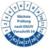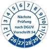 Prüfplakette "Nächste Prüfung nach DGUV Vorschrift 54" auf Bogen
