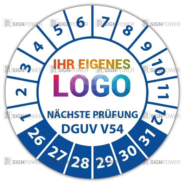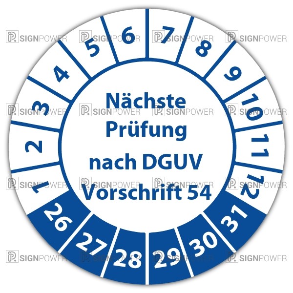 • Prüfplakette "Nächste Prüfung nach DGUV Vorschrift 54" Prüfplakette "Nächste Prüfung nach DGUV Vorschrift 54" logo