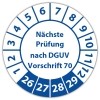 Prüfplakette "Nächste Prüfung nach DGUV Vorschrift 70" auf Bogen