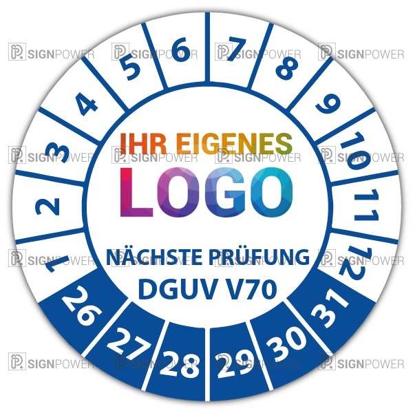 • Prüfplakette "Nächste Prüfung nach DGUV Vorschrift 70" Prüfplakette "Nächste Prüfung nach DGUV Vorschrift 70" logo