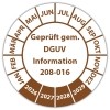 • Prüfplakette Dokumentenfolie "Geprüft gem. DGUV Information 208-016" Prüfplakette Dokumentenfolie "Geprüft gem. DGUV Information 208-016" logo