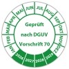 Prüfplakette Dokumentenfolie "Geprüft nach DGUV Vorschrift 70" auf Bogen