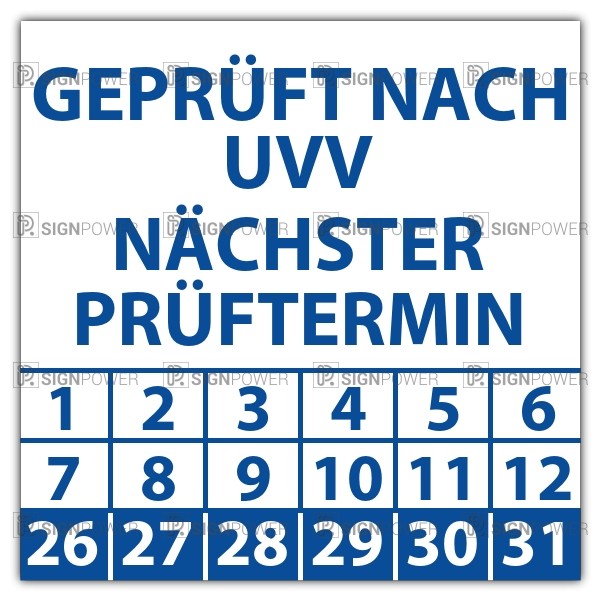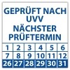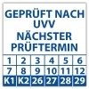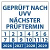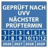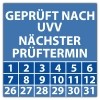 • Prüfplakette Dokumentenfolie "Geprüft nach UVV nächster Prüftermin" Prüfplakette Dokumentenfolie "Geprüft nach UVV nächster Prüftermin" logo