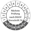 Prüfplakette Dokumentenfolie "Nächste Prüfung nach DGUV Vorschrift 70" auf Bogen
