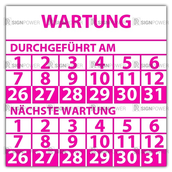 • Prüfplakette doppeltes datum "Wartung"