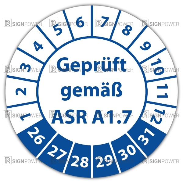 • Prüfplakette "Geprüft gemäß ASR A1.7" Prüfplakette "Geprüft gemäß ASR A1.7" logo