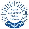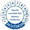 Prüfplakette "Geprüft nach BGV D29 Nächste Prüftermin" auf Rolle