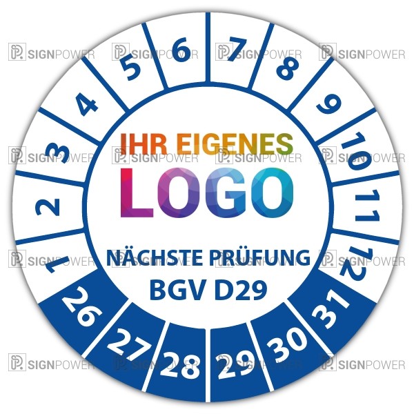 • Prüfplakette "Geprüft nach BGV D29 Nächste Prüftermin" Prüfplakette "Geprüft nach BGV D29 Nächste Prüftermin" logo