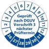 Prüfplakette "Geprüft nach DGUV Vorschrift 3 nächster Prüftermin" auf Rolle