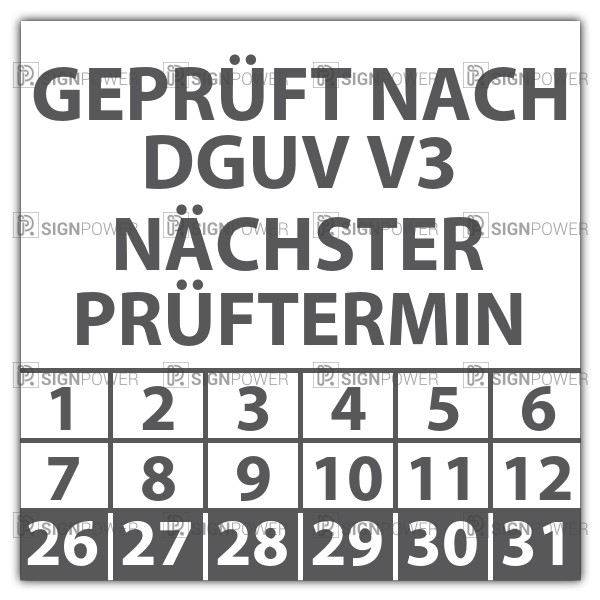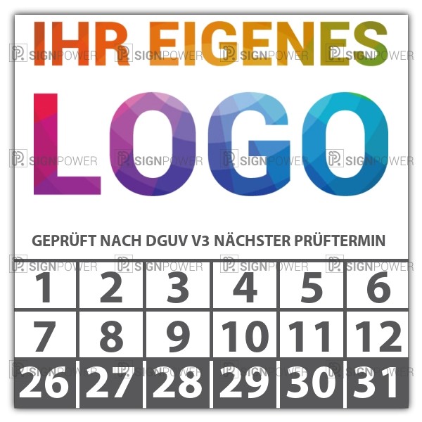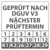 • Prüfplakette "Geprüft nach DGUV Vorschrift 3 nächster Prüftermin" Prüfplakette "Geprüft nach DGUV Vorschrift 3 nächster Prüftermin" logo