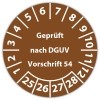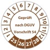 Prüfplakette "Geprüft nach DGUV Vorschrift 54" auf Bogen
