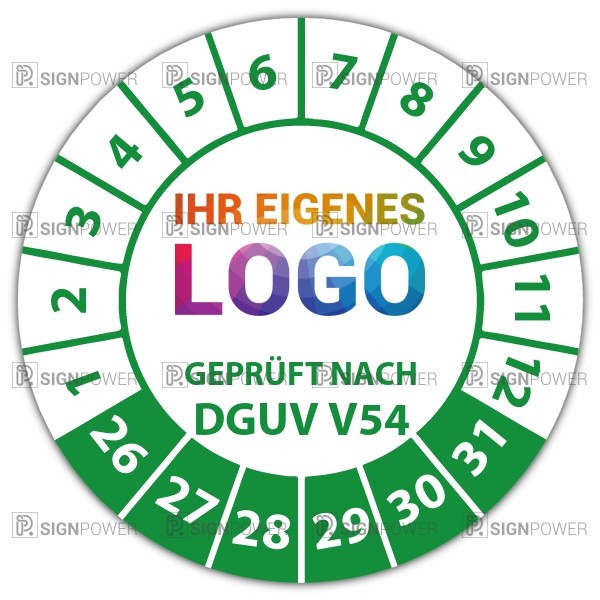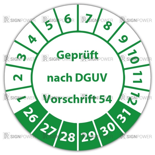 • Prüfplakette "Geprüft nach DGUV Vorschrift 54" Prüfplakette "Geprüft nach DGUV Vorschrift 54" logo