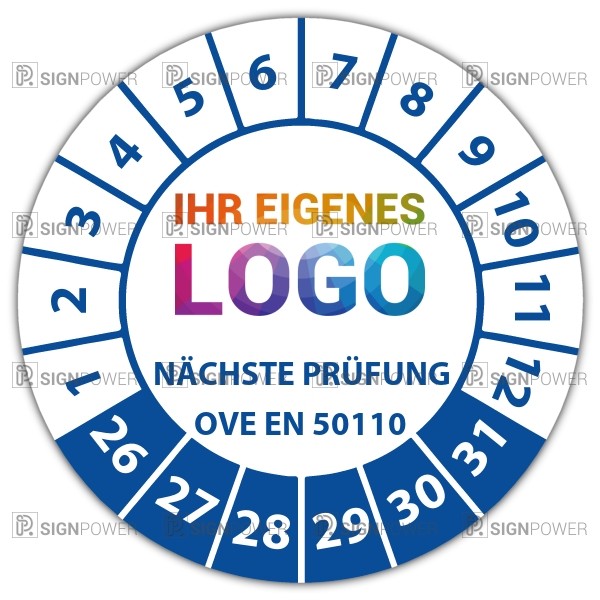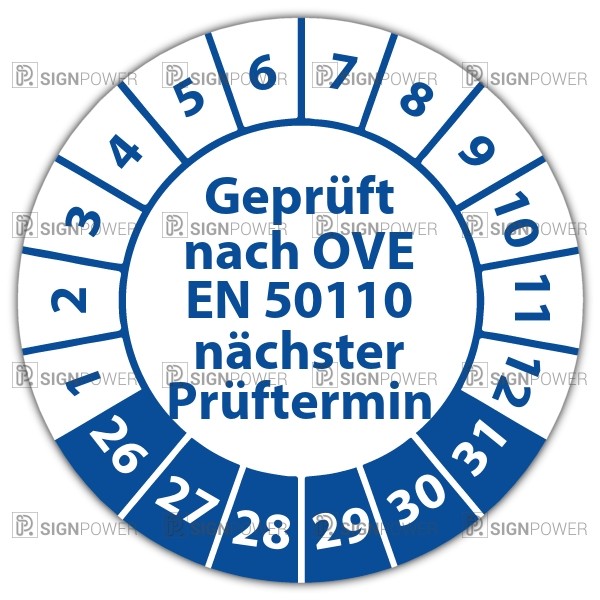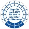 • Prüfplakette "Geprüft nach OVE EN 50110 nächster Prüftermin" Prüfplakette "Geprüft nach OVE EN 50110 nächster Prüftermin" logo