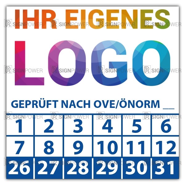 • Prüfplakette Geprüft nach OVE/ÖNORM (eigene eingabe) Prüfplakette Geprüft nach OVE/ÖNORM (eigene eingabe) logo