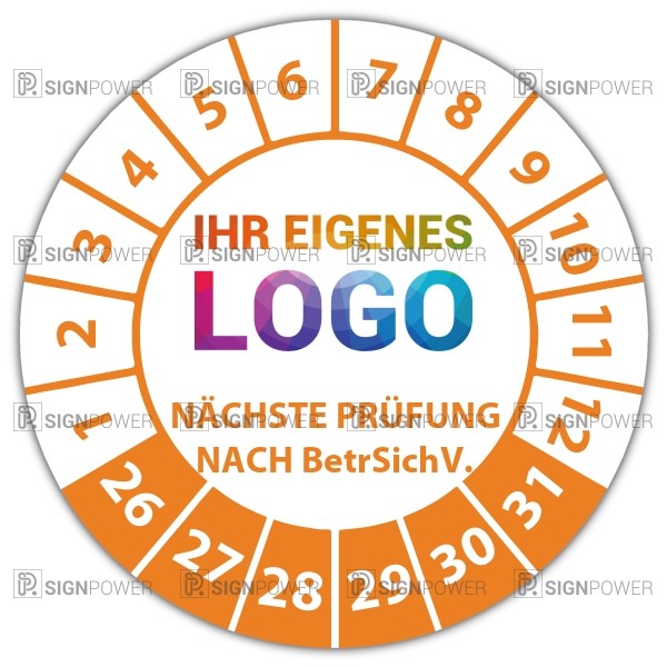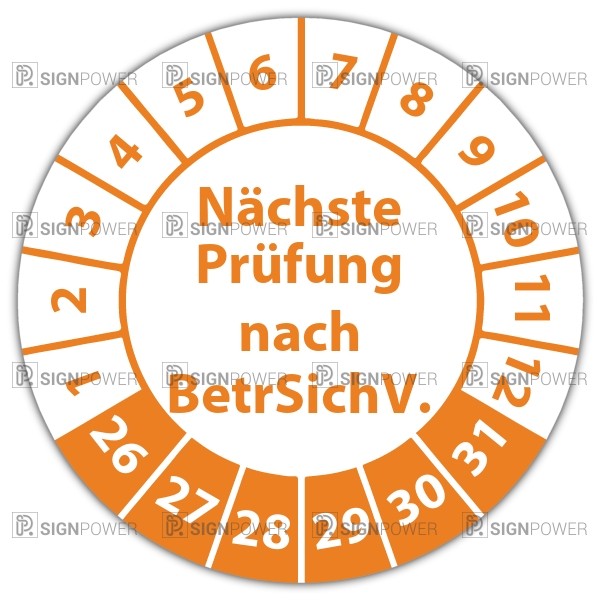 • Prüfplakette "Nächste Prüfung nach BetrSichV." Prüfplakette "Nächste Prüfung nach BetrSichV." logo
