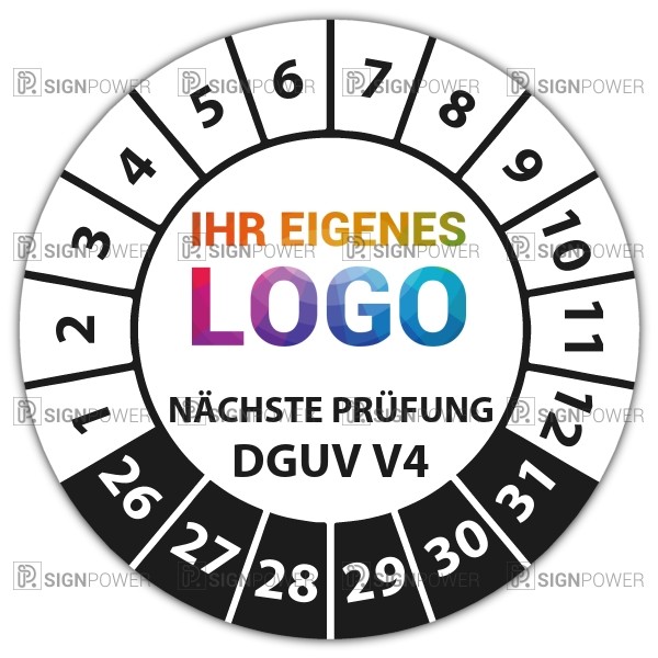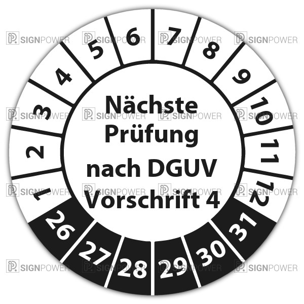 • Prüfplakette "Nächste Prüfung nach DGUV Vorschrift 4" Prüfplakette "Nächste Prüfung nach DGUV Vorschrift 4" logo