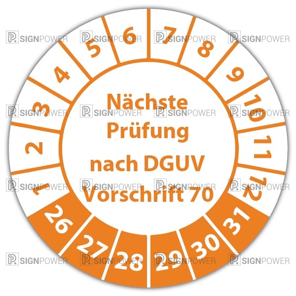 • Prüfplakette "Nächste Prüfung nach DGUV Vorschrift 70" Prüfplakette "Nächste Prüfung nach DGUV Vorschrift 70" logo