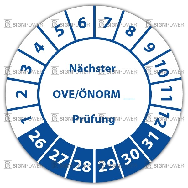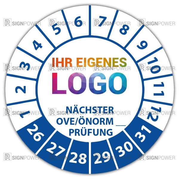 • Prüfplakette Nächster OVE/ÖNORM Prüfung (eigene eingabe) Prüfplakette Nächster OVE/ÖNORM Prüfung (eigene eingabe) logo