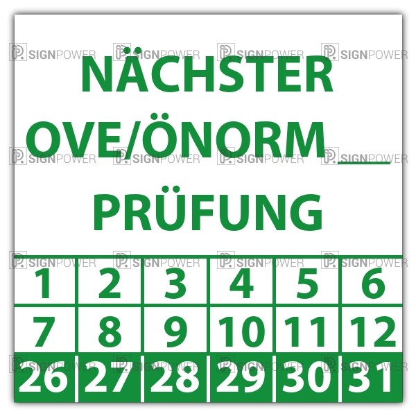• Prüfplakette Nächster OVE/ÖNORM Prüfung (eigene eingabe) Prüfplakette Nächster OVE/ÖNORM Prüfung (eigene eingabe) logo